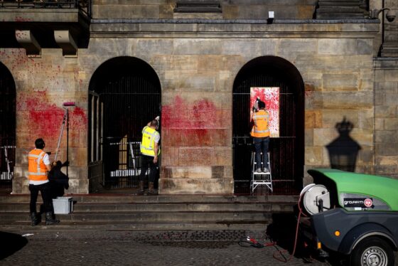 Pro-Palestine campaigners throw red paint at Amsterdam palace