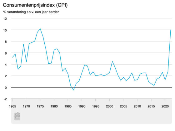 Dutch inflation averaged 10% last year and is one of highest in Europe