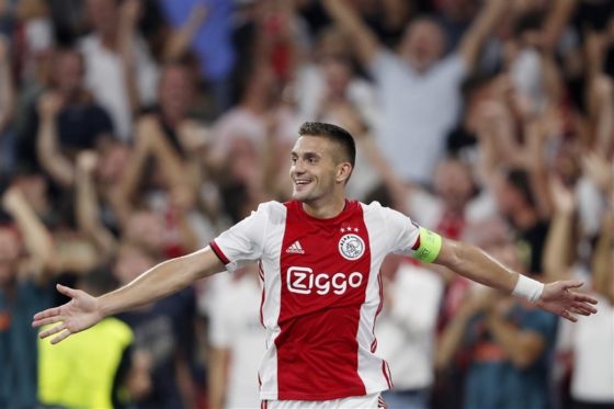 Dusan Tadic celebrates scoring a penalty for Ajax at VVV Venlo on August 18, 2019