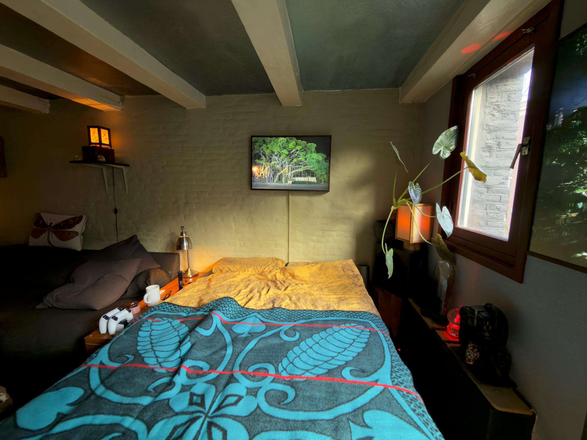 Non-SmokingNot allowedThe apartment is located in the heart of the picturesque canals of Amsterdam, directly on the Singel canal, and just a three-minute walk from Central Station. The space is richly decorated and full of character and personality, creating a warm and distinctive atmosphere. The apartment comes fully furnished and styled, featuring a large 80-inch wall-mounted television, curated artwork throughout, and a home bar in the living room.