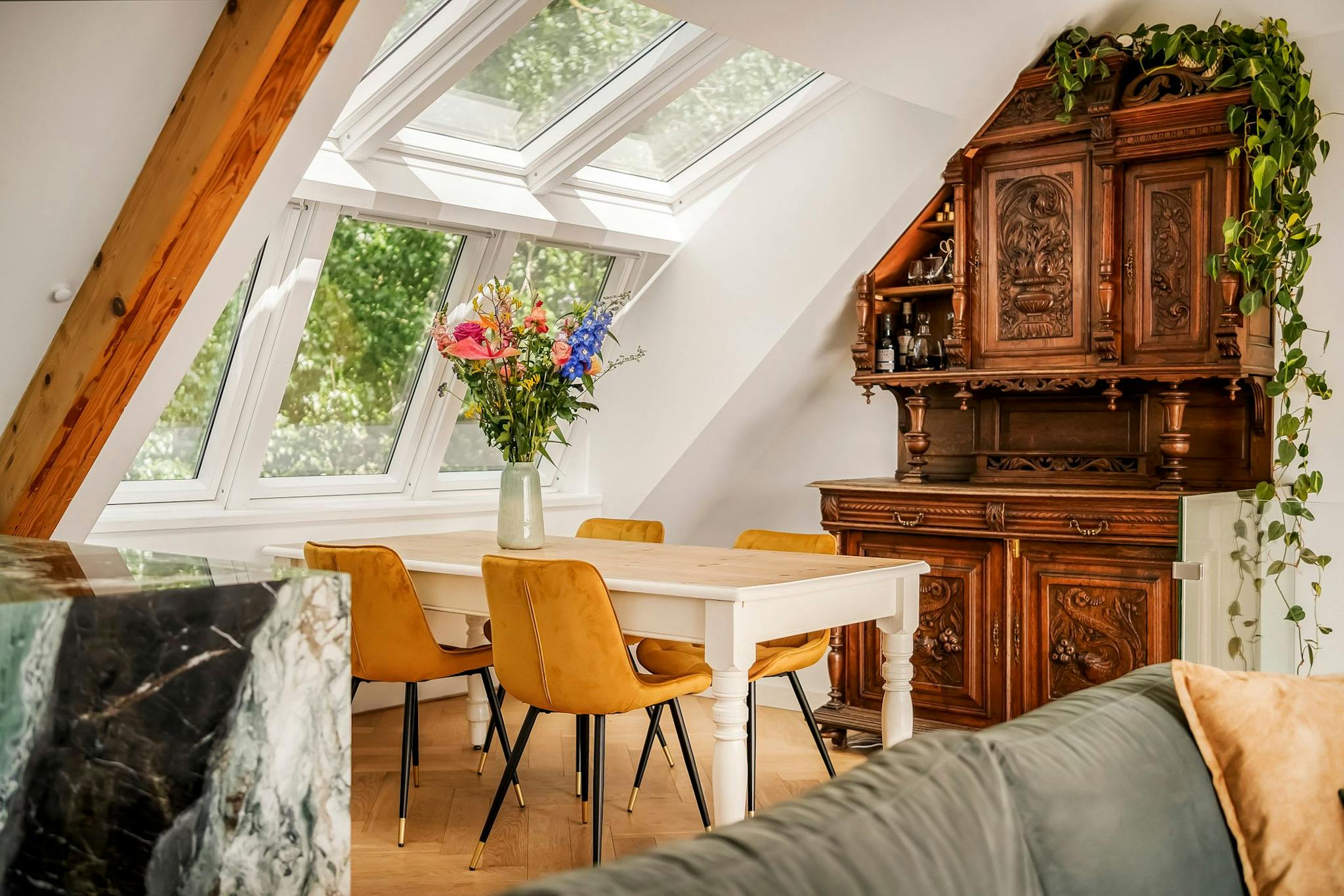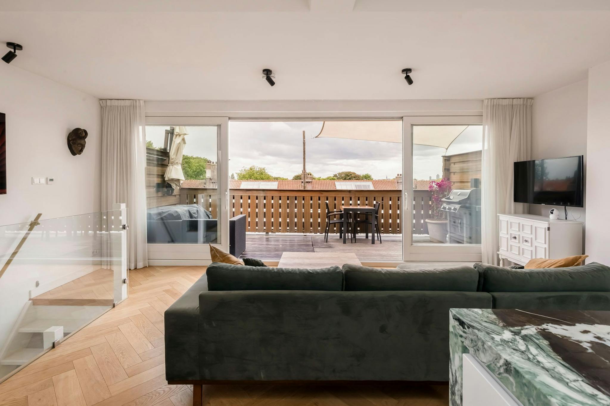 Non-SmokingNot allowedLiving by Rembrandtpark, with a grassy field and canal right out front – this spacious double upper-level apartment with two terraces and three bedrooms offers the perfect blend of urban convenience and natural tranquility. Situated on a wonderfully quiet, peaceful street along the canal with unobstructed views of the green Rembrandtpark, this generous and bright double upper-floor apartment of approximately 91m2 provides a rare combination of comfort and charm. What's Included: Fully furnished throughout with quality pieces. Complete kitchen equipment and utensils. Fresh linen and towels provided. All cleaning supplies and equipment. High-speed internet connection. All utilities (gas, water, electricity) included. Flexible rental contracts available for temporary stays. Layout & Features. Spread over two levels, the home features three spacious bedrooms, two delightful terraces, and a comfortable open living area. Via the well-maintained communal stairwell, you reach the entrance on the third floor with a hallway featuring storage space and a staircase leading to the fourth floor. Third Floor: Three well-sized bedrooms (two with double beds ready for occupation, third bedroom versatile for use as baby room, office, or guest accommodation) Modern bathroom with bathtub, walk-in shower, and vanity unit. Separate toilet. Rear bedroom with direct access to sunny terrace through full-width sliding doors. Front bedroom includes cozy bay window lounge area with French windows overlooking water and park. Fourth Floor: The heart of the home features a bright and inviting living space with an open kitchen fitted with green marble and built-in appliances including Bora induction cooktop with integrated extractor, fridge, freezer, dishwasher, oven, gold Quooker tap, and large sink. Twelve exceptional skylights stretch across the full width of the room, offering stunning views of trees, water, and park. The rear features full-width sliding doors leading to the second spacious terrace with panoramic views across Amsterdam. Additional Features: Warm oak flooring throughout. Comfortable underfloor heating. Energy label A with solar panels and high-efficiency systems. Completely renovated in 2020/2021. Two full-width terraces. Mechanical ventilation system.