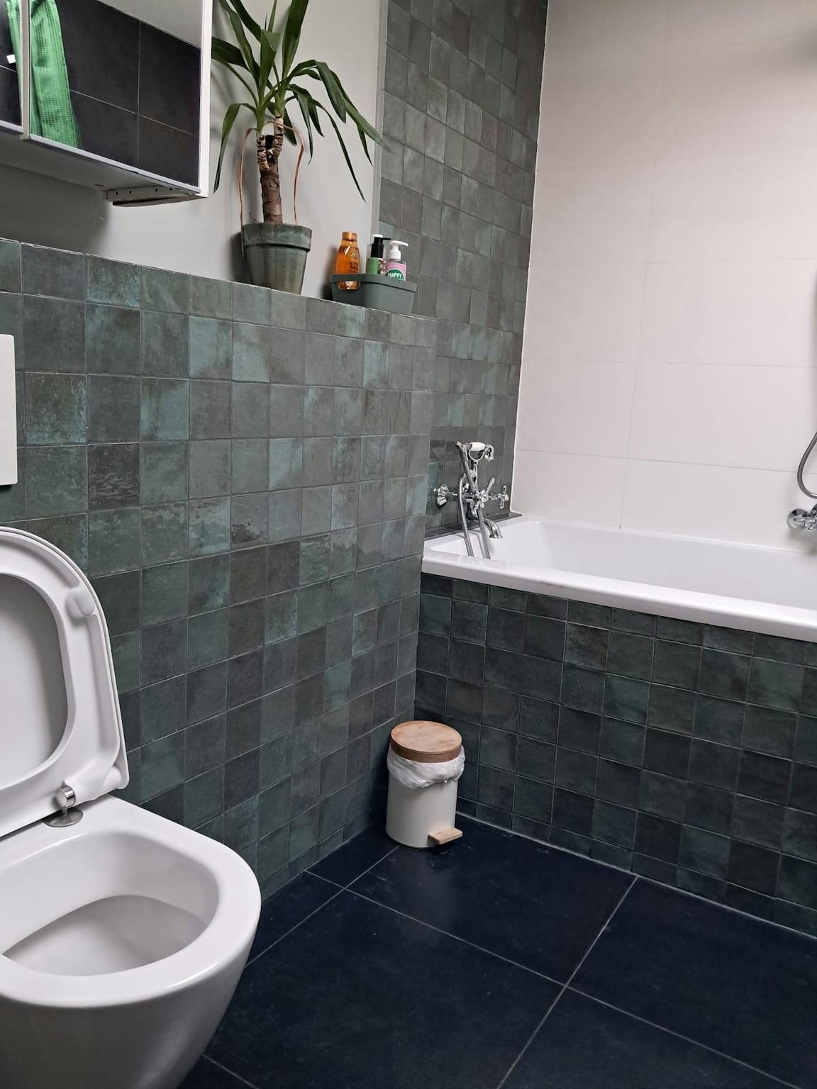 Modern bathroom equipped with a bathtub and a refreshing rain shower.