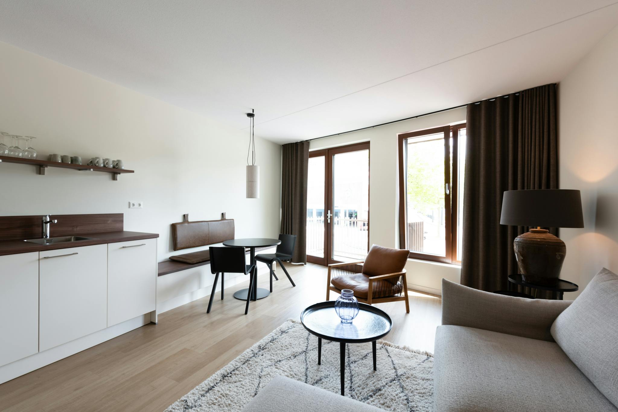 The Economist balcony apartments are our Economist studios on all floors other than the ground floor. They offer the same benefits as the Economist, such as a desk bed, a large piece of furniture that separates the living area from the sleeping area, and a sofa bed, which is ideal for guests. In addition, they also have their own private balcony!