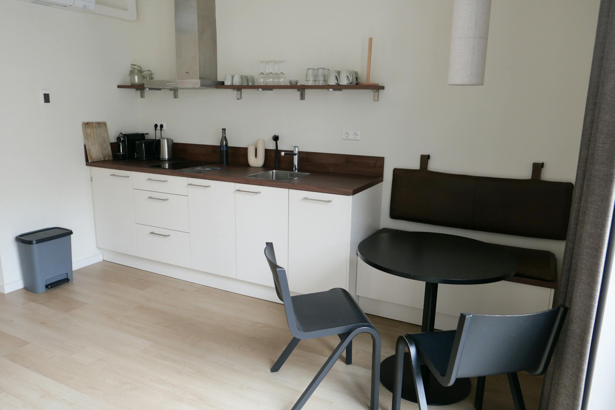 The courtyard studios are the smallest studios we offer in terms of square meters, but that certainly does not make them less pleasant to stay in. The smart layout ensures that they still feel spacious and because of the view of the courtyard, the studio feels light, spacious, and relaxing.