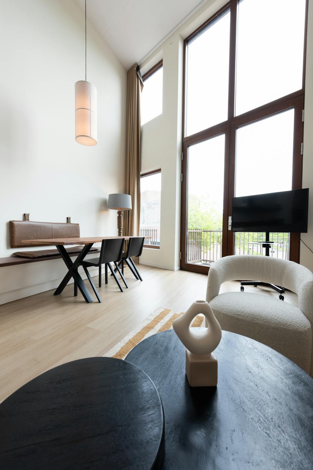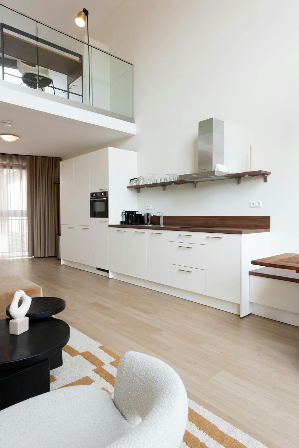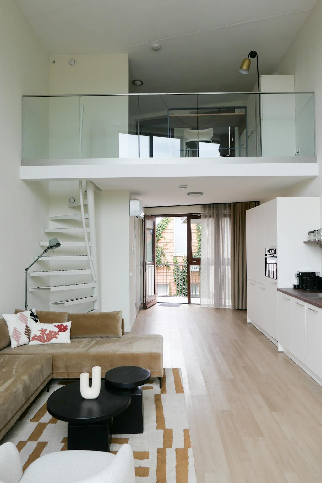 The loft apartments are the real eye-catchers. They radiate luxury and comfort and could come straight out of a home magazine. The homes feel spacious because the ceilings are extremely high and the windows extend all the way to the ceiling. On the ground floor of the loft apartments, you will find the kitchen, bathroom, and living room area. There is also a balcony. Those who take the stairs upstairs can sit behind a desk to work, with a view through the large windows. The sleeping area is also on the top floor.