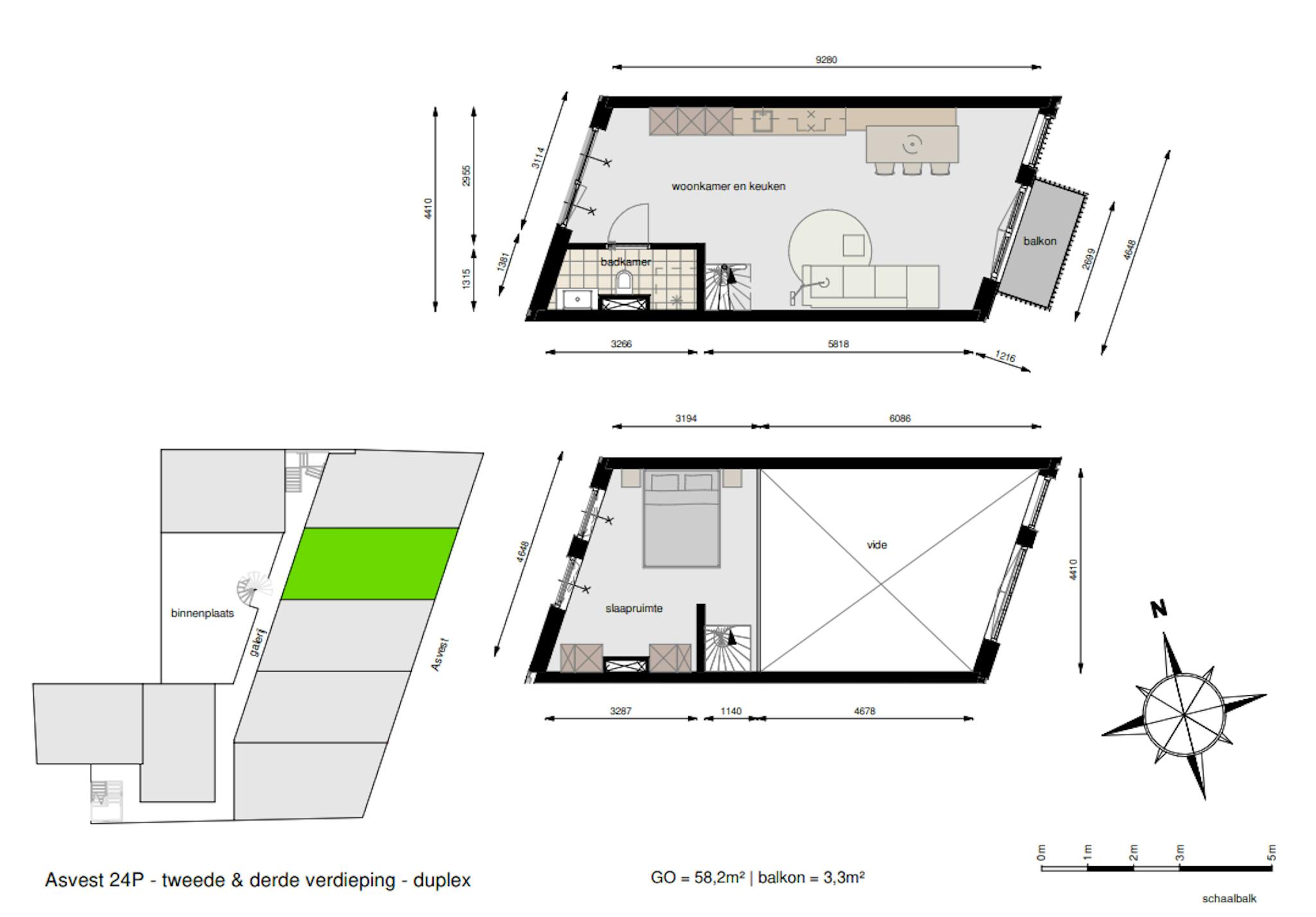 This loft apartment, located on the second & third floor of the building, is 59 square meters in size and has a balcony of 3,3 m2. The apartment is fully equipped and furnished with a bed, a sofa bed, a closet, a dining table, and chairs. The studio also comes with towels and bed linen.