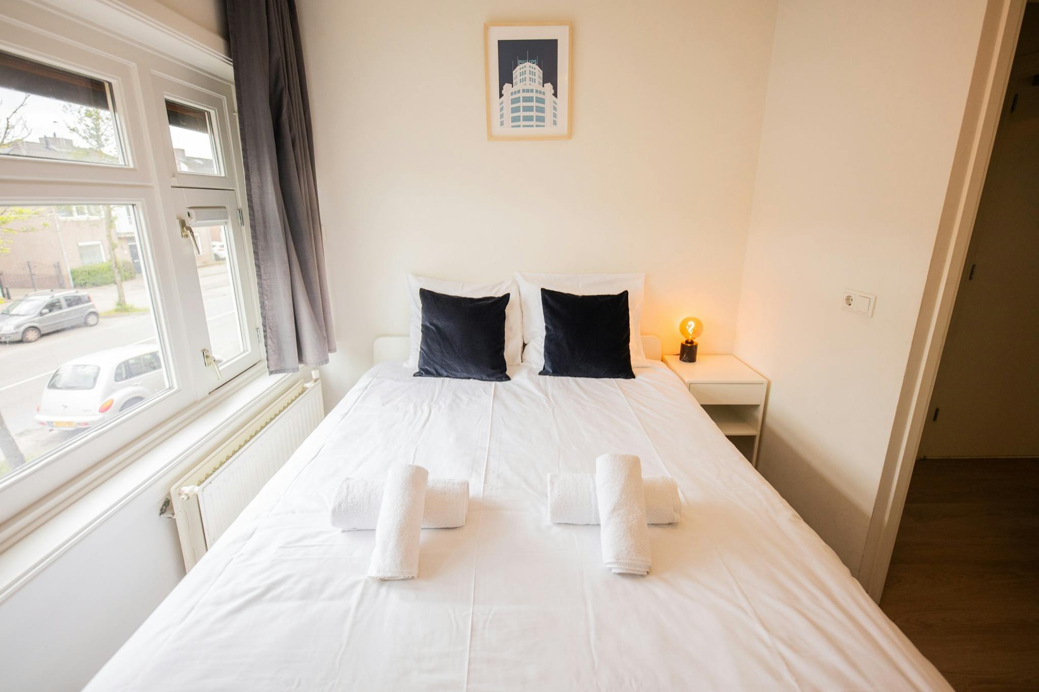 Non-SmokingNot allowedWelcome to our newly furnished 2 bedroom apartment very close to the city centre of Eindhoven with free car parking in front of the building. The apartment features a nicely decorated living / dinning area, a fully equipped kitchen, a spacious bedroom with queen bed and work desk, another bedroom with double bed and a bathroom with a walkin shower. Perfect for a family, friends or colleagues.