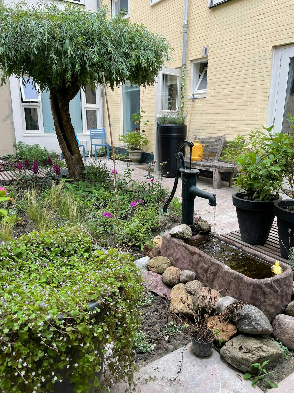 De binnentuin wordt samen met ons en de hond Bink gedeeld.