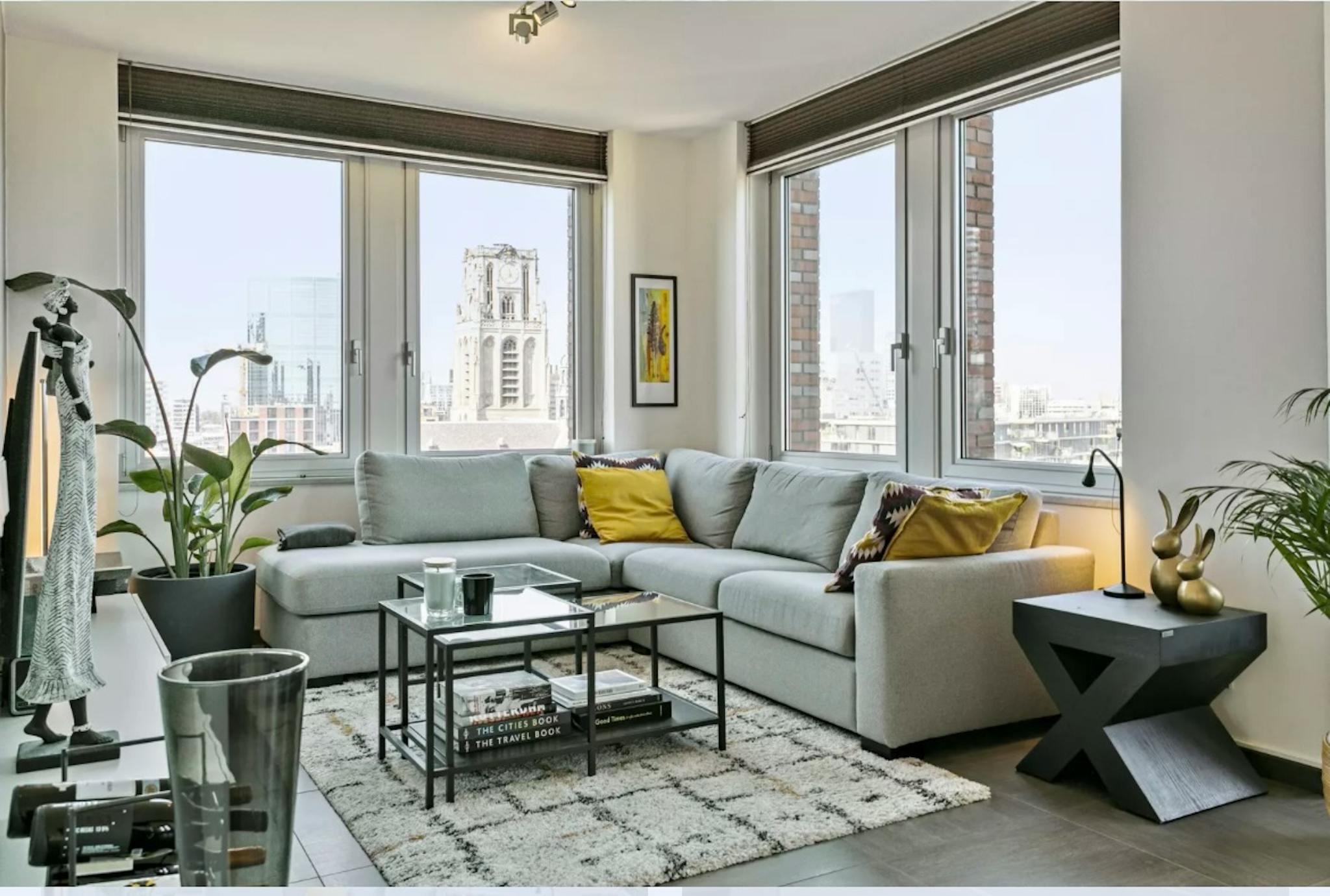 Bright living room with large windows