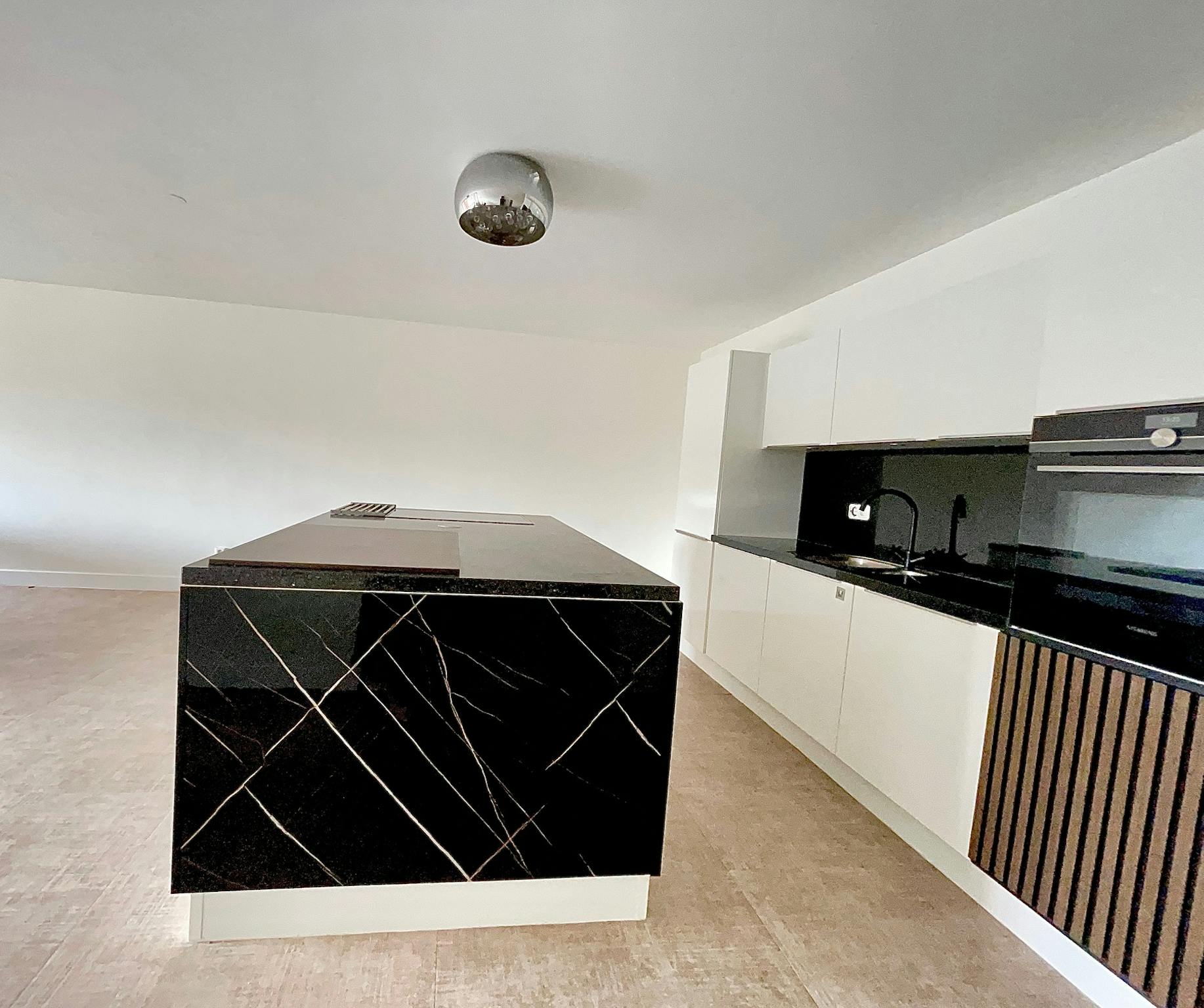 The generous living area is filled with natural light and seamlessly connects to the modern open kitchen with cooking island an ideal setup for both everyday living and entertaining guests. From the living room, you step directly onto the first balcony, where you can enjoy both the morning and afternoon sun.
