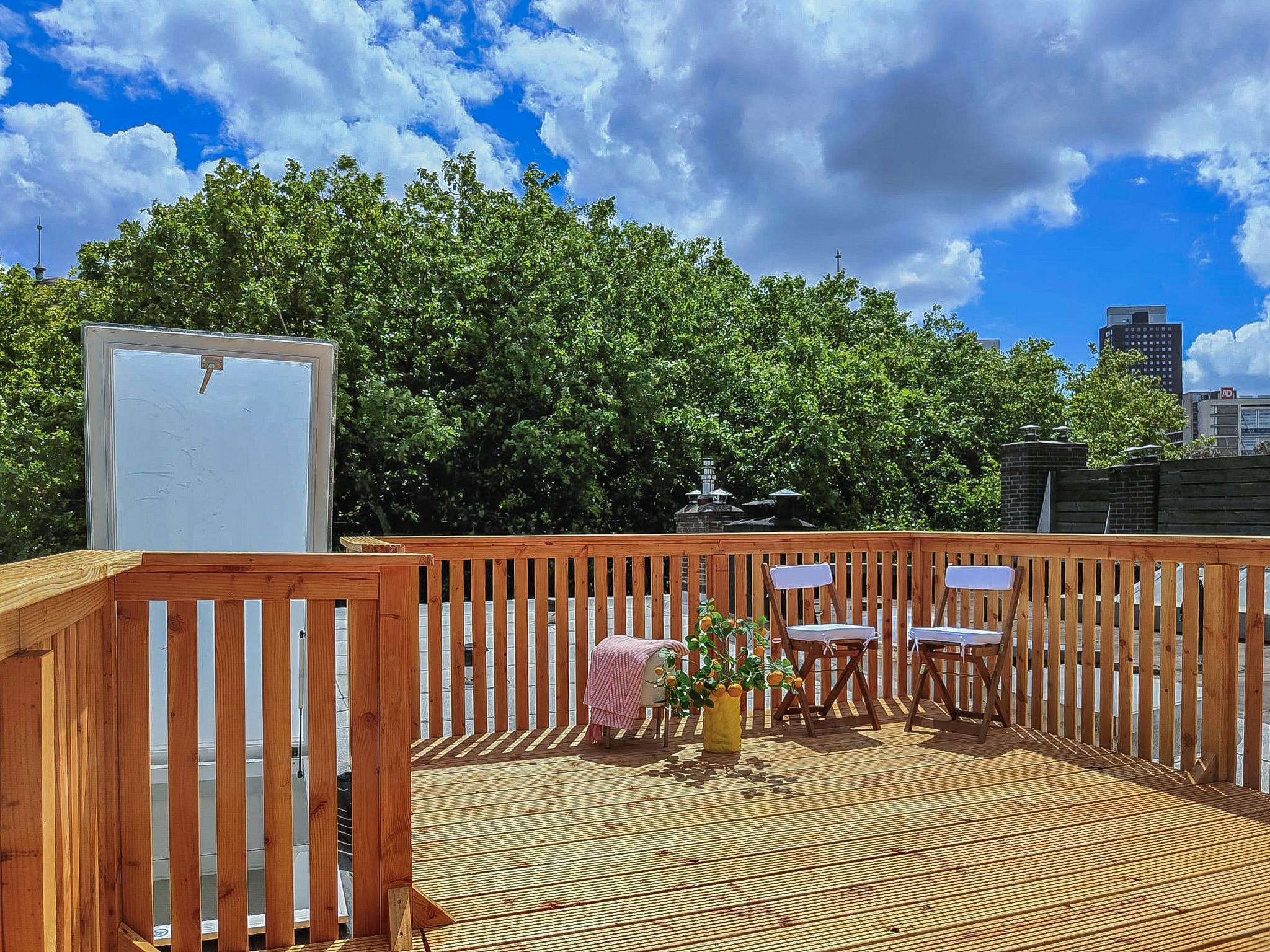 This Apartment provides access to the shared roof terrace which provides a great view of the skyline of Rotterdam. Every separate unit of the building has their own heating so you can easily accommodate your own preference. Further it includes supplies like a vacuum cleaner, iron board and flatiron as well as towels and beddings. The general spaces are being cleaned every 2/3 weeks and our tenants will be able to make use of the services of our cleaning staff for their apartments.