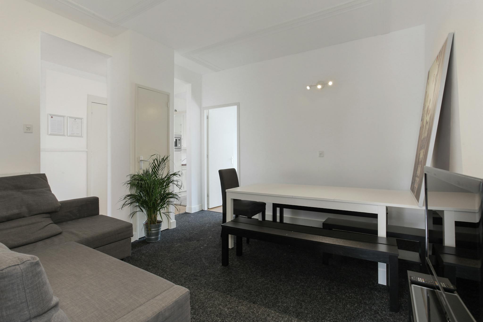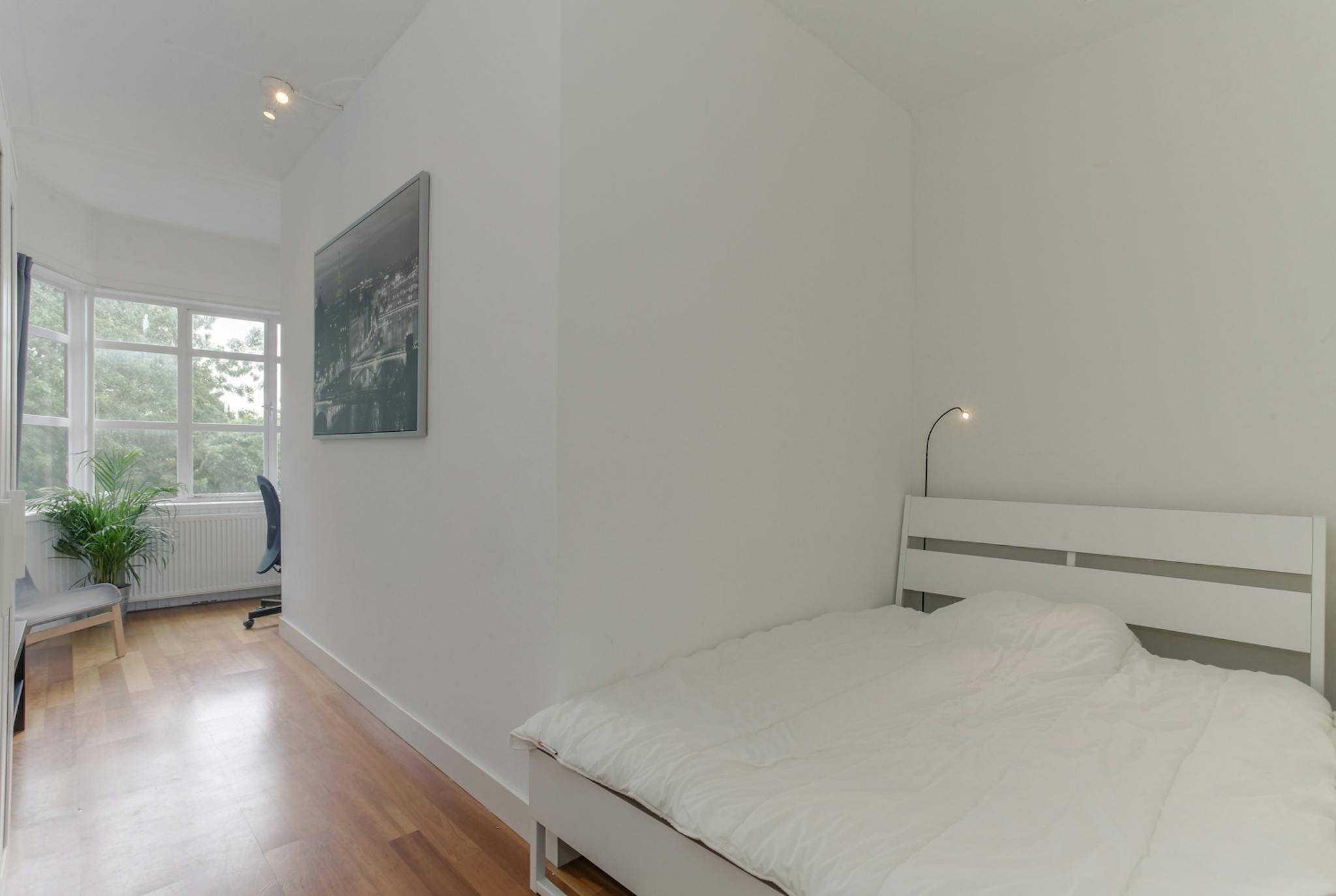 A townhouse of quaint Dutch architecture with four spacious flatshares, living room, kitchen, a modern bathroom & toilet. The apartment is all furnished and equipped with an electric system and self-controlled central heating, window covers, carpet, spotlights.
