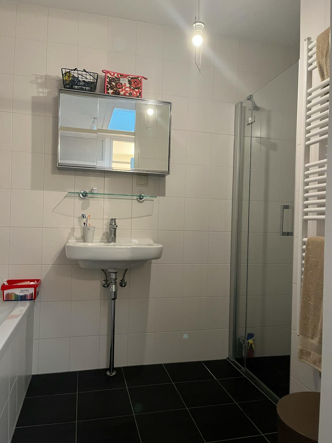 - Modern complete bathroom with walk-in shower and bathtub