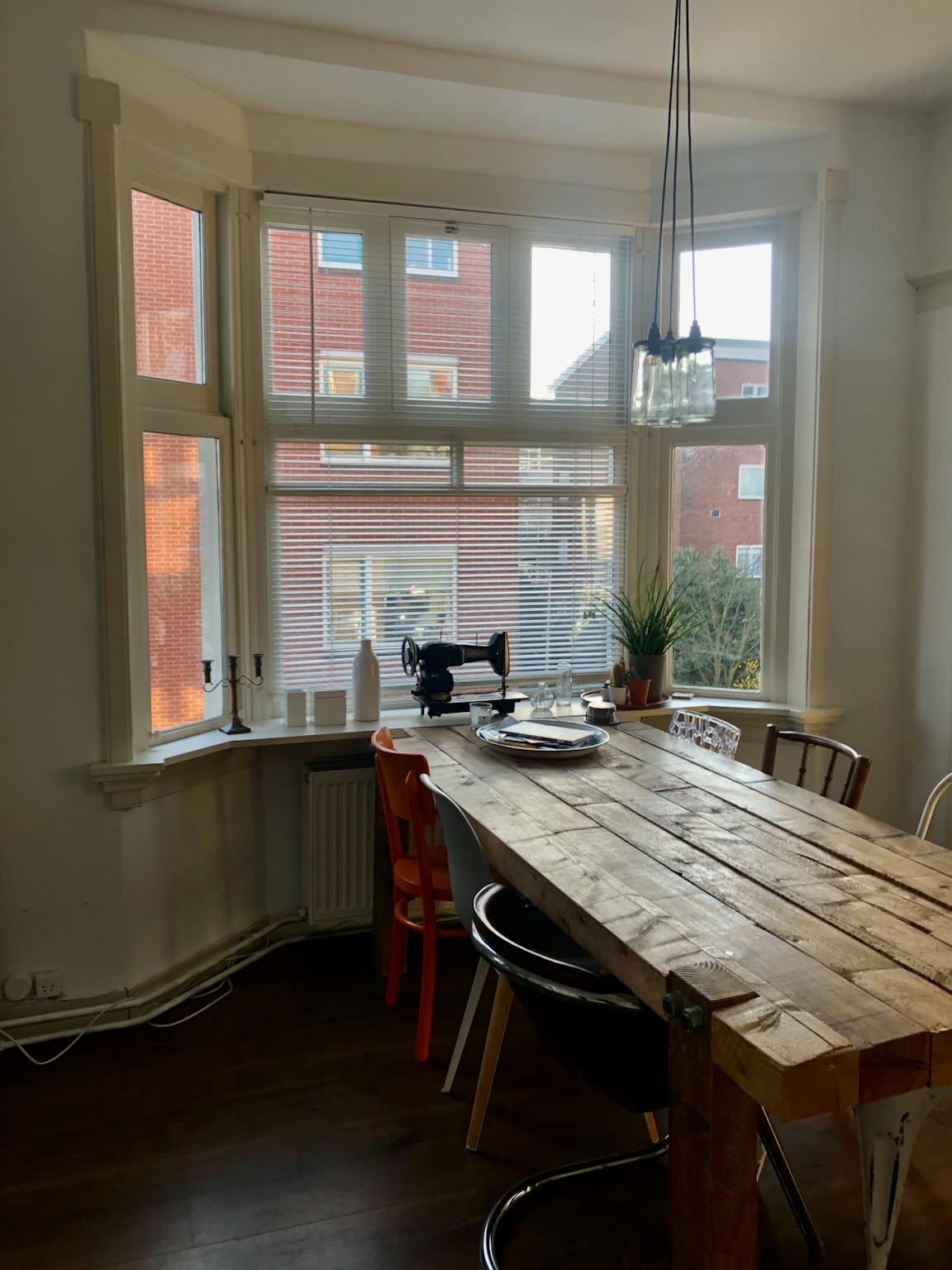 Non-SmokingNot allowed100m2 apartment in the trendy area Bomenbuurt. A large living with open kitchen (with everything for cooking), fire place, design bath, a big rooftop terras. There are 2 bedrooms: one big upstairs and one smaller one downstairs. Upstairs is also the bath room and the big terrace. The small bedroom has a small balcony with a shed. Bathroom can only be entered via master bedroom.