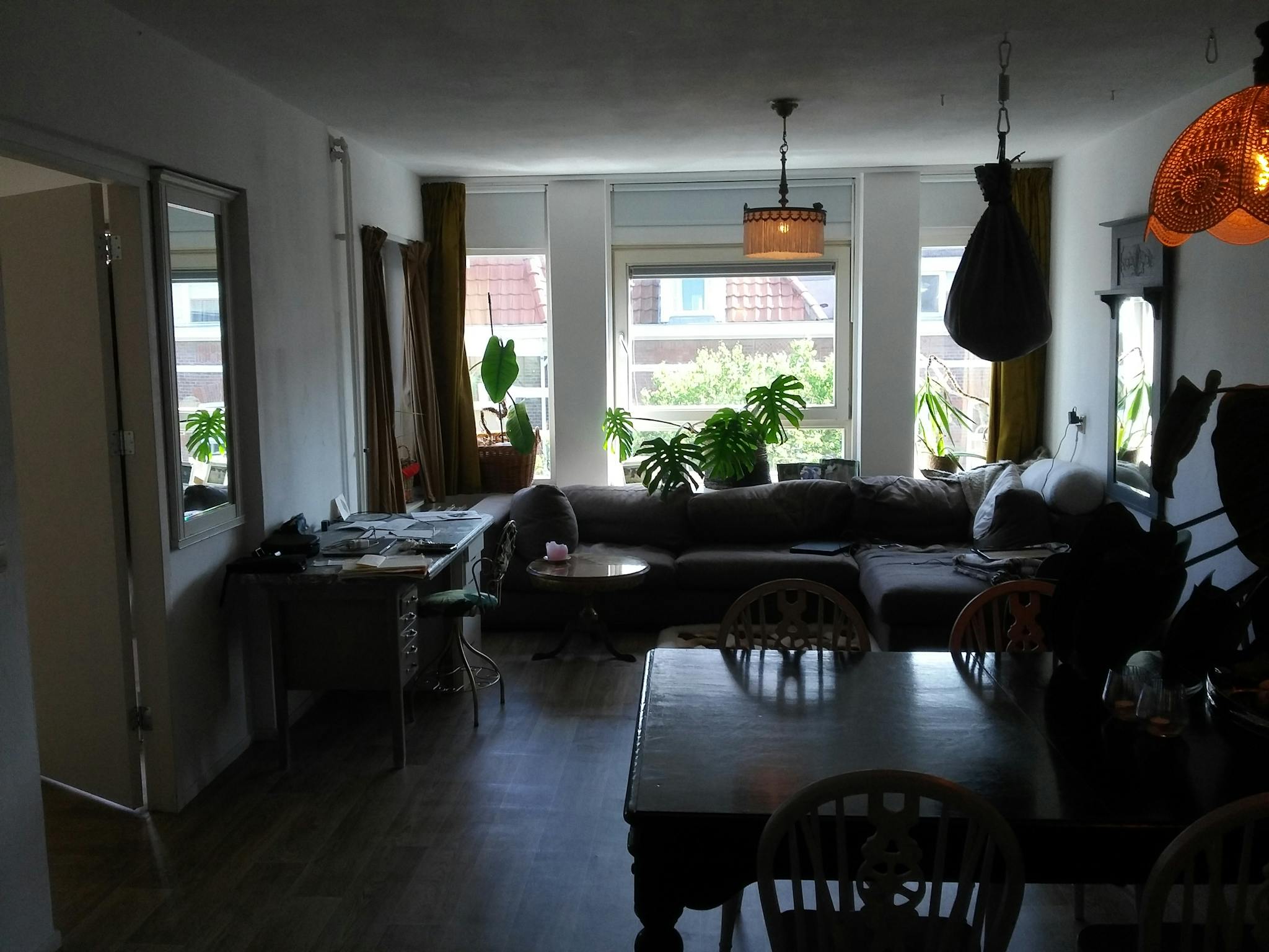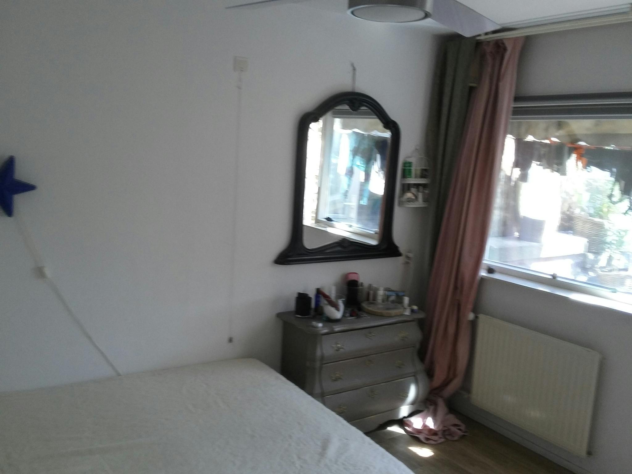 I am going away for one year but there is a small chance I come back sooner and in that case you will have to sleep in the living room and will get my bedroom back. Rent will then be decreased to 500 euro and utility costs will be halved in that scenario. I usually go to bed from 9 pm till 6 am. So I won't use the livingroom then.