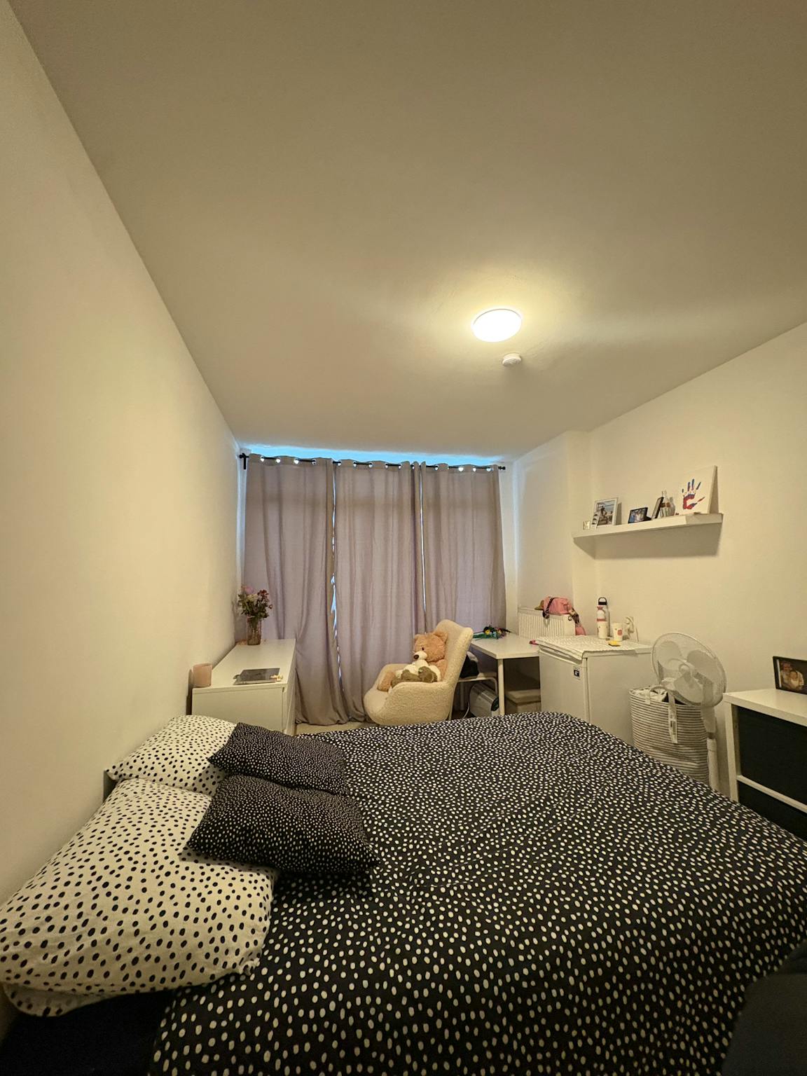 This furnished room is located at the front of the building, in a quiet, female-only student house. The home is shared by three international female students—two first-years and one soon-to-graduate—making it a friendly and supportive environment for new arrivals.