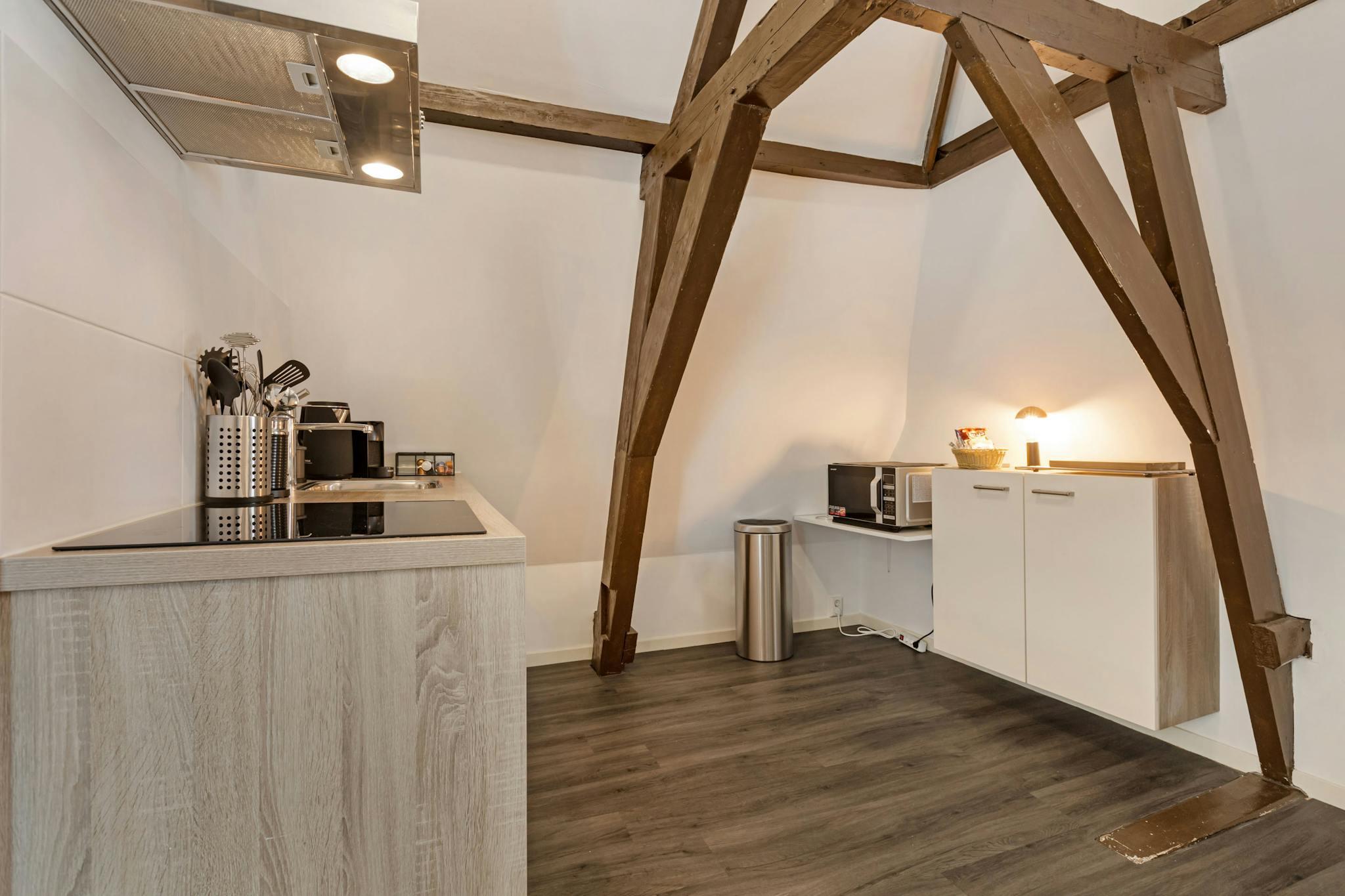 This apartment of approximately 40 m2 each, is to be found on the first floor of the building. The apartment offers a modern interior that includes a dining area, comfy sofa, a fully equipped kitchen, a bathroom, a separate toilet, a bedroom with a double bed and a nice view from the apartment. Combine the cosy interior with the location in a quiet former monastery garden, in the heart of the city yet away from the daily fuzz of the city.
