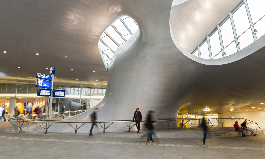Some highlights include the Markthal, a horseshoe-shaped building with offices and a street food market hall, the striking Erasmus Bridge over the Nieuwe Maas, the world-famous tilted Cube Houses, the shining Museum Boijmans van Beuningen Depot, and even Rotterdam Central Station itself.